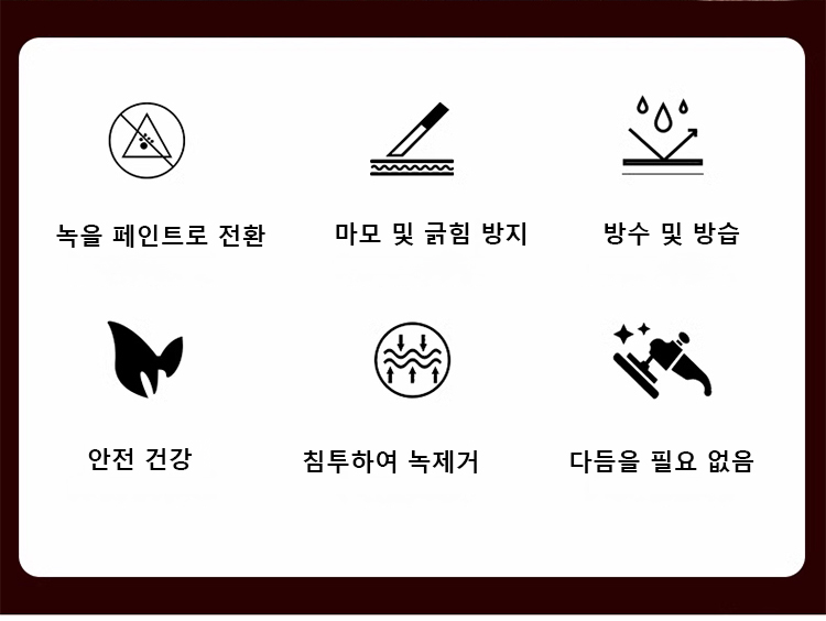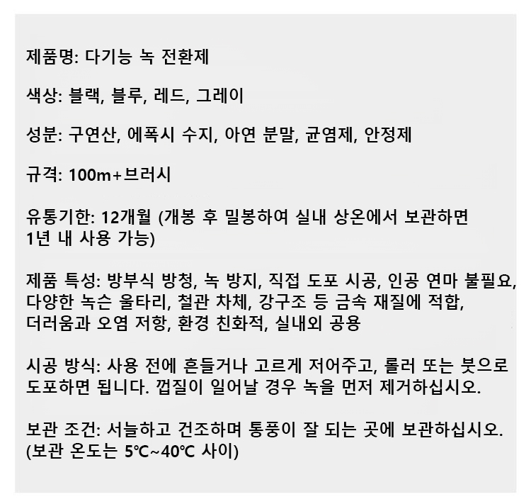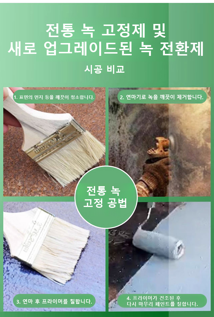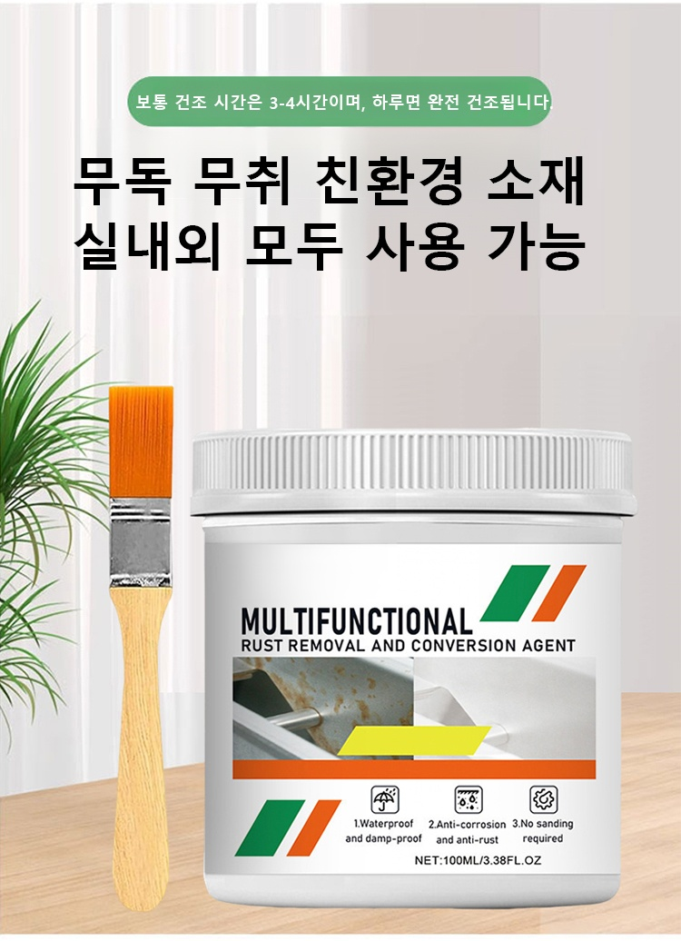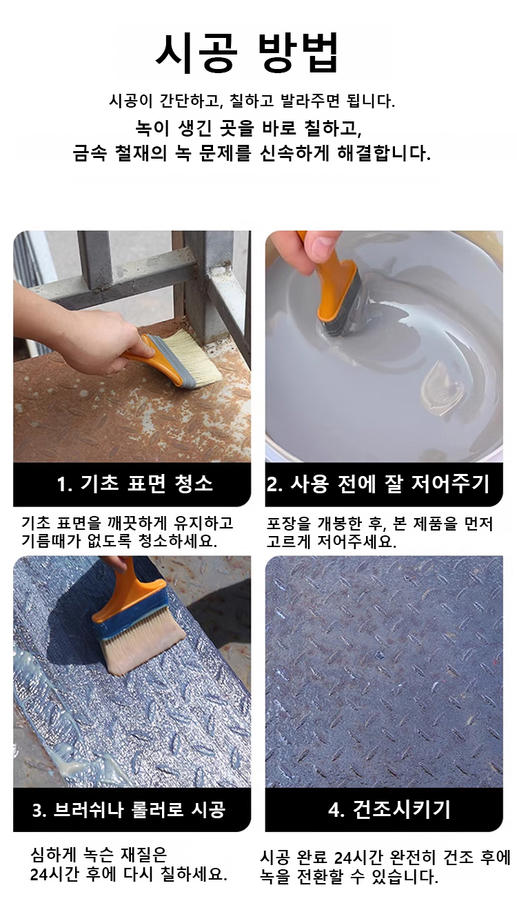 한 번 바르면 24시간 내에 흔적 없이 변환되어, 한 병으로 집 전체의 녹 방지를 해결할 수 있습니다!