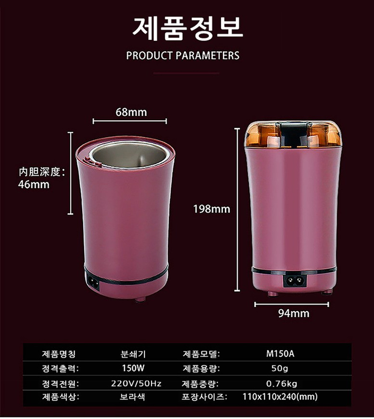 이 제품은 작지만 실용적이며, 선진 기술을 적용하여 커피 원두를 빠르고 균일하게 분쇄하는 것 뿐만 아니라 다양한 곡류, 식재료 및 조미료에 적용할 수 있습니다!